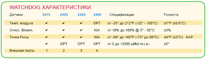 WatchDog 2475 Станция Роста Растений идеально подходит для теплиц - включает в себя датчики для подсчета квантов (ФАР) света, температуры воздуха, относительной влажности и 1 свободный внешний порт для дополнительного датчика: