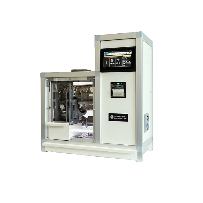 Инновационный сепаратор Grain Cleaner изготовлен по принципу роторного сепаратора. Прибор полностью автоматизирует метод определения сорной и зерновой примесей в образцах зерна различных культур. Оператору достаточно только загрузить продукт в бункер загрузки анализатора, и через несколько секунд получить данные о количестве примесей в образце в процентах на встроенном цветном ЖК дисплее, распечатать результат измерения и передать его на персональный компьютер.